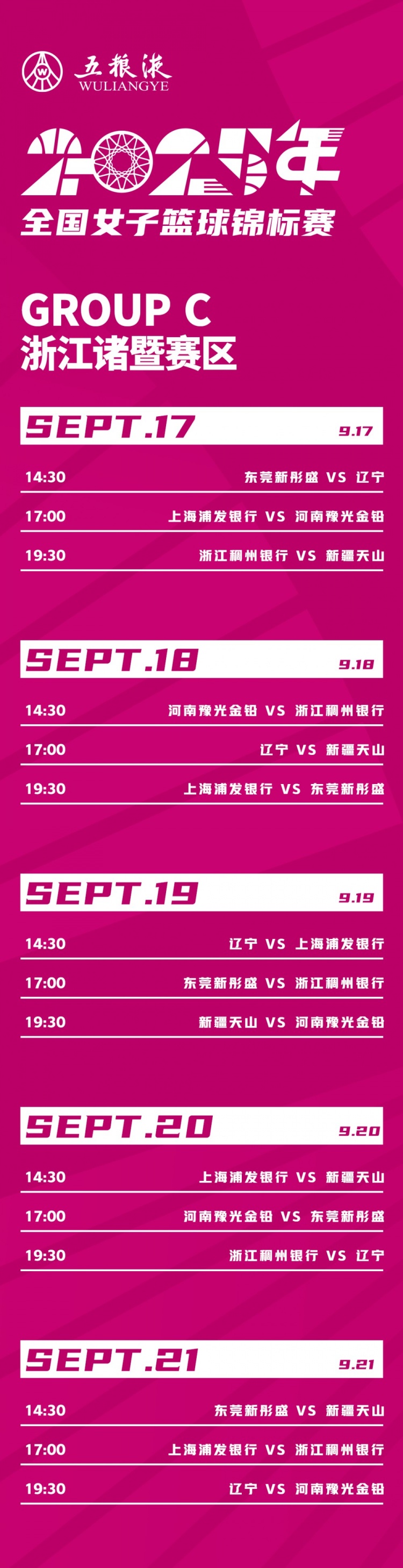 全国女子篮球锦标赛9月10日至9月21日分别在武汉、定州、诸暨举办